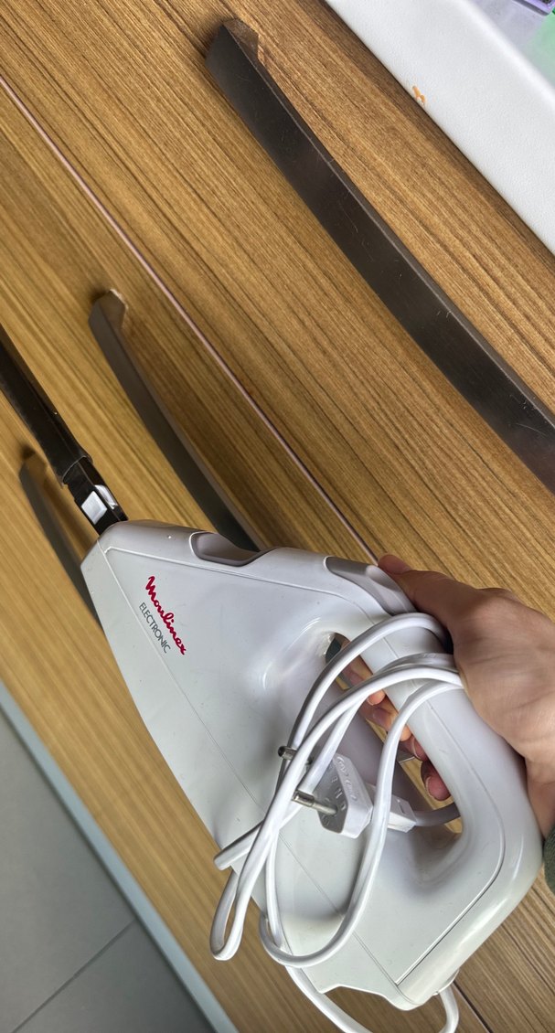 Beyaz ve gri renkte, ergonomik saplı ve kablolu elektrikli bıçak