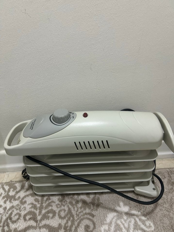 Ayarlanabilir sıcaklık kontrolüne sahip beyaz ve gri elektrikli ısıtıcı, kompakt tasarımıyla kolay yerleştirilir. Prize takıldığı anda ısıtma özelliğine sahiptir
