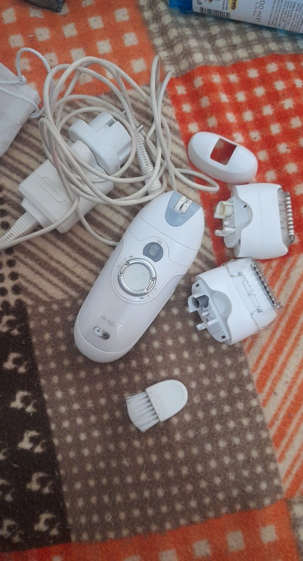 Beyaz ve gri renkte, farklı başlıkları ve temizlik fırçası olan çok fonksiyonlu epilatör seti. Güç adaptörü ile birlikte. trendyolds aynısı var az kullandım. lazere başladım diye satıyorum