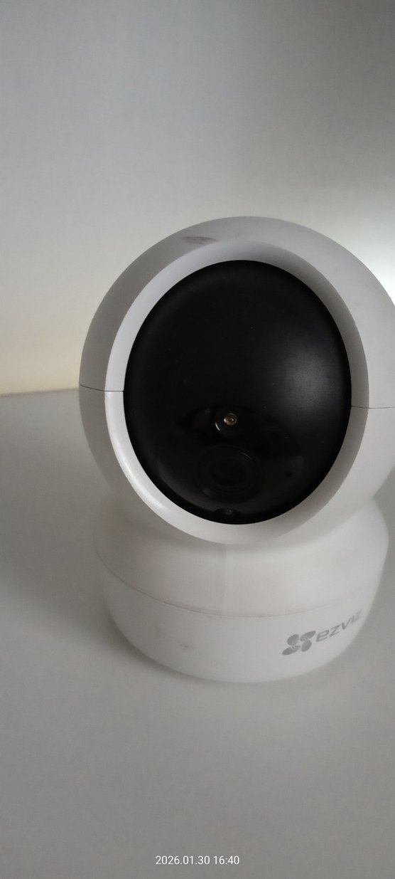 EZVIZ video kamera, beyaz ve gri renklerde, yuvarlak lens kapağı ile Ezviz C6N Full HD IP Wi-Fi Güvenlik Kamerası sorunsuz. yönlü izleme sağlar.
