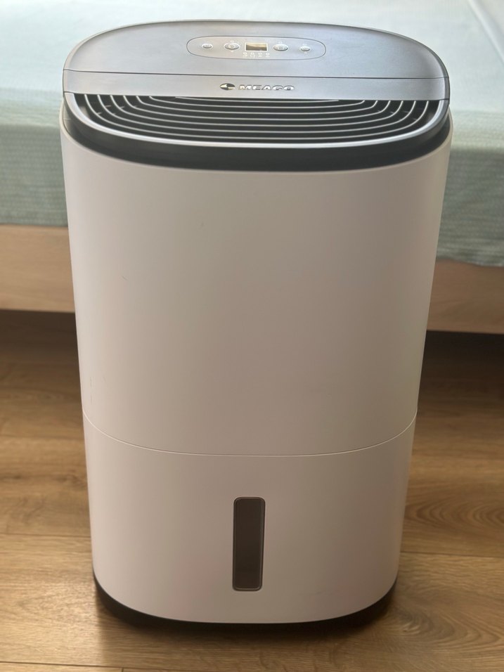 Beyaz ve gri renkte, üstte kontrol düğmeleri ve su seviyesi göstergesi bulunan hava temizleyici ve nemlendirici, havayı temiz ve nemli tutar. ️