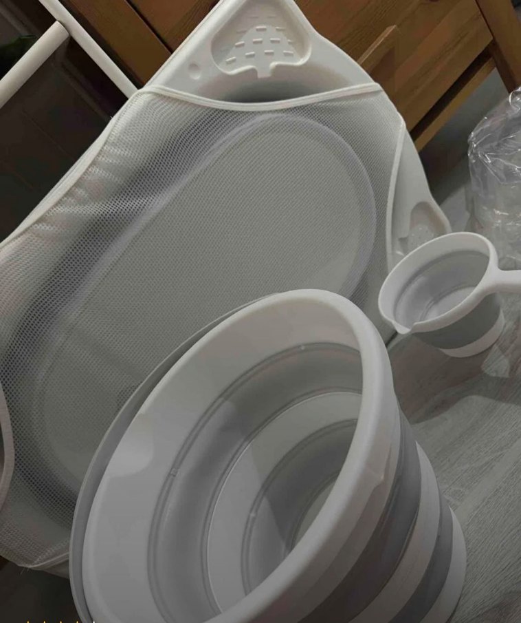 Beyaz ve Gri Katlanabilir Bebek Küveti ve Sepeti