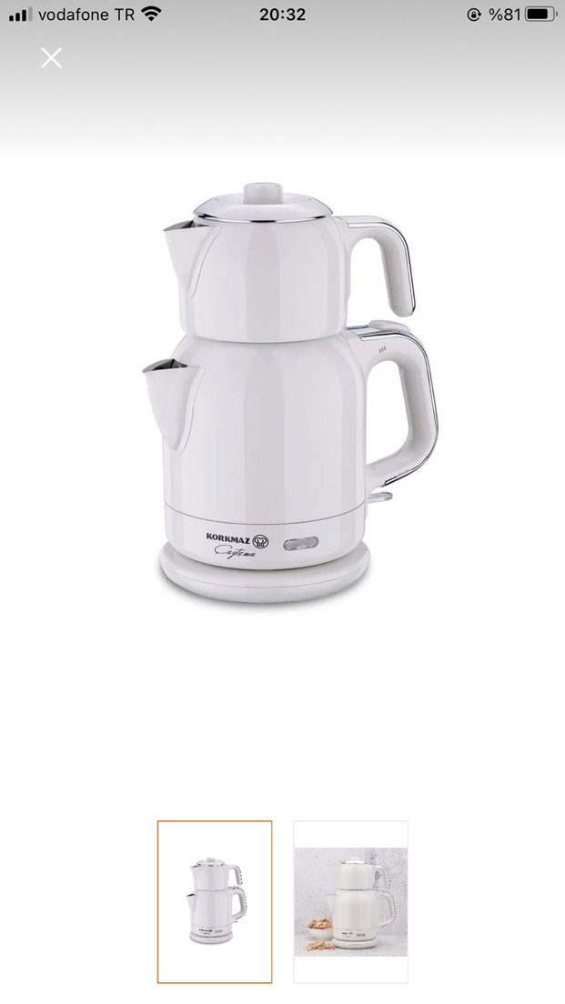 Beyaz ve gri renkli Korkmaz çay makinesi, su ısıtıcısı ve demliği bir arada sunar, pratik ve şık bir tasarıma sahiptir. Sıfır hiç kulanılmadı