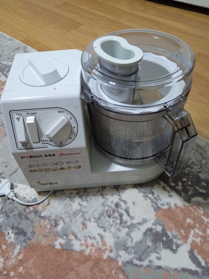 Beyaz ve gri Prokit 444 elektronik mutfak robotu, çoklu hız ayarları ve şeffaf kapağa sahiptir. Pulse ve karıştırma fonksiyonları içerir.