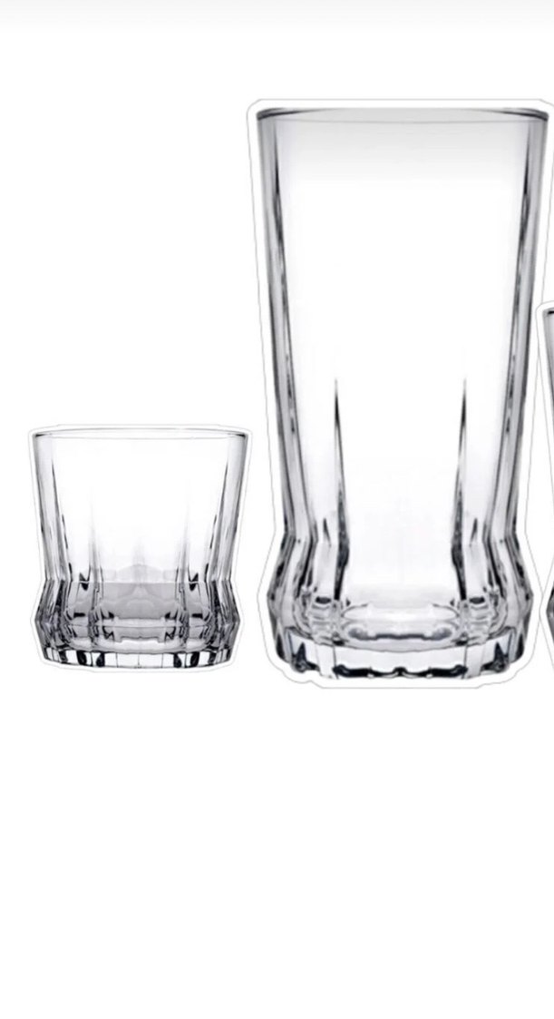 Kısa ve uzun cam bardaklardan oluşan, gri tonlarında şeffaf bir bardak seti. İçecek servisi için uygundur.