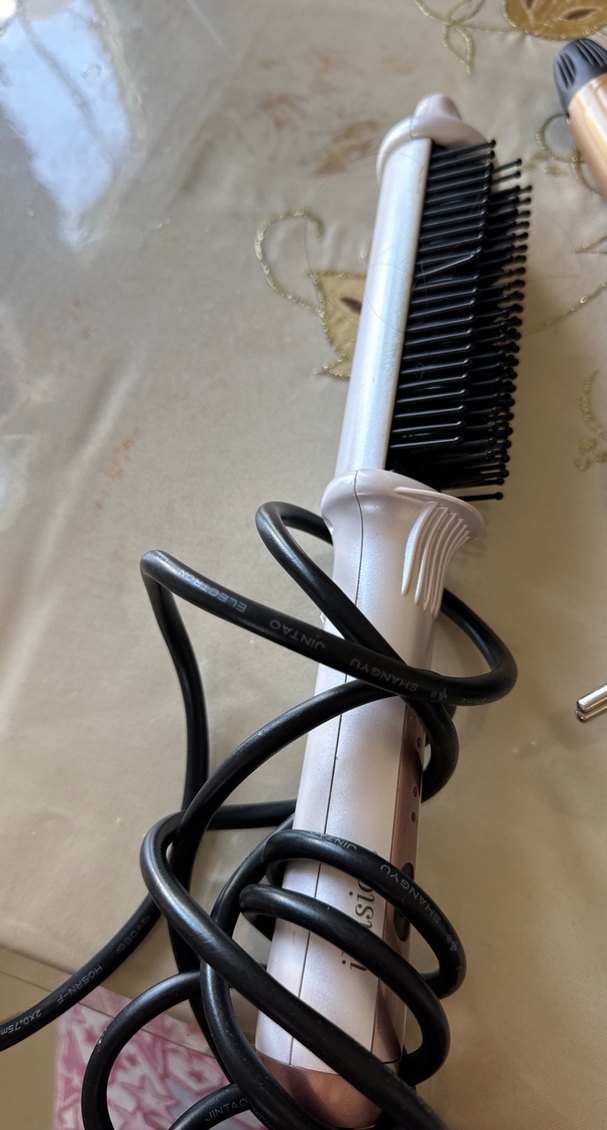 Beyaz ve gri renklerde, saçları kolayca düzleştirmek için taraklı saç düzleştirici. Siyah güç kablosu ile kullanımı pratiktir. ♀️