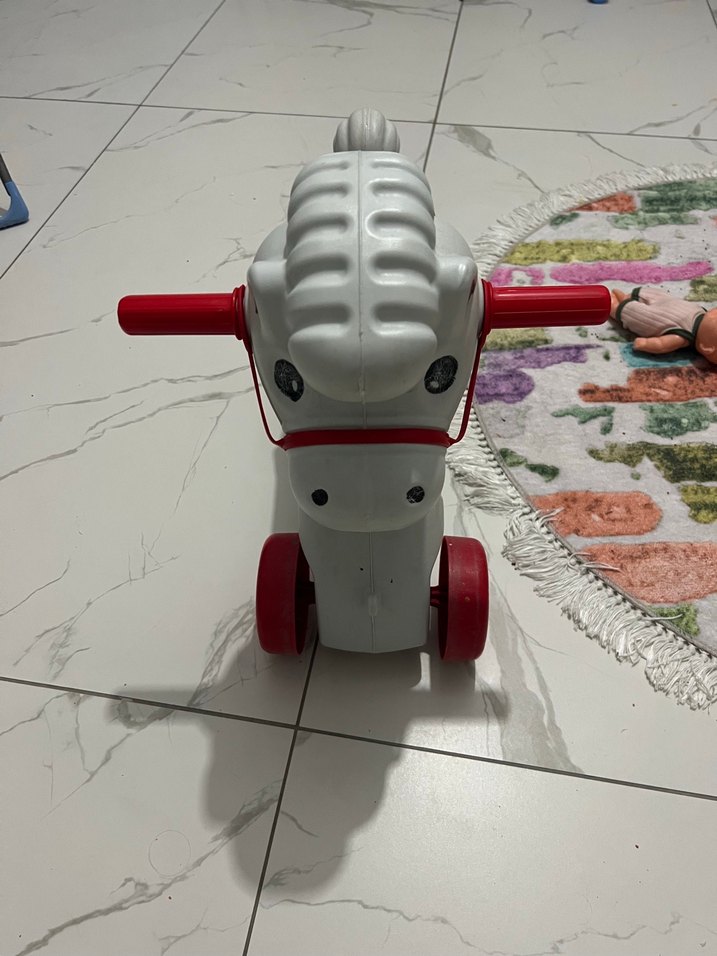 Kırmızı tutacaklı ve tekerlekli beyaz çocuk, at dayanıklı yapıya sahip hiç bir problemi yok sorunsuz