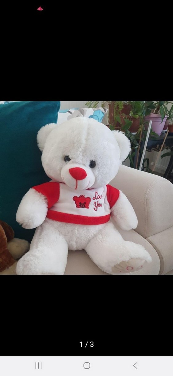 Beyaz ve Kırmızı Renkli Peluş Ayıcık