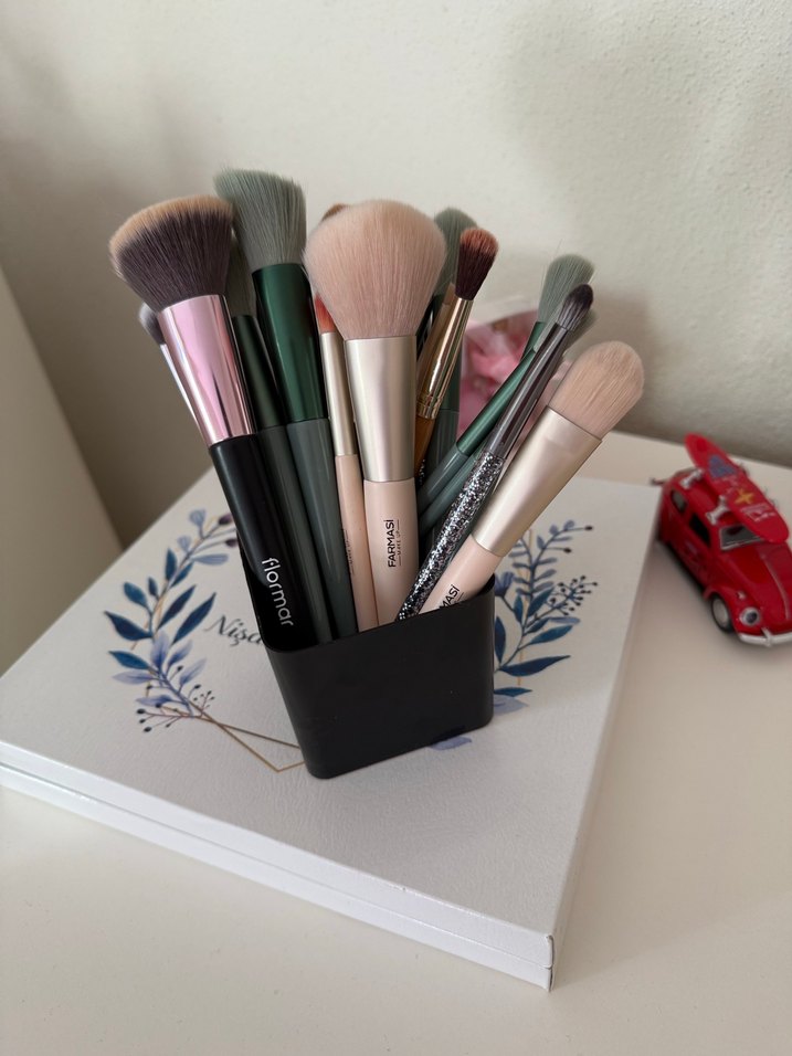 Beyaz ve Koyu Renk Makyaj Fırçaları Seti