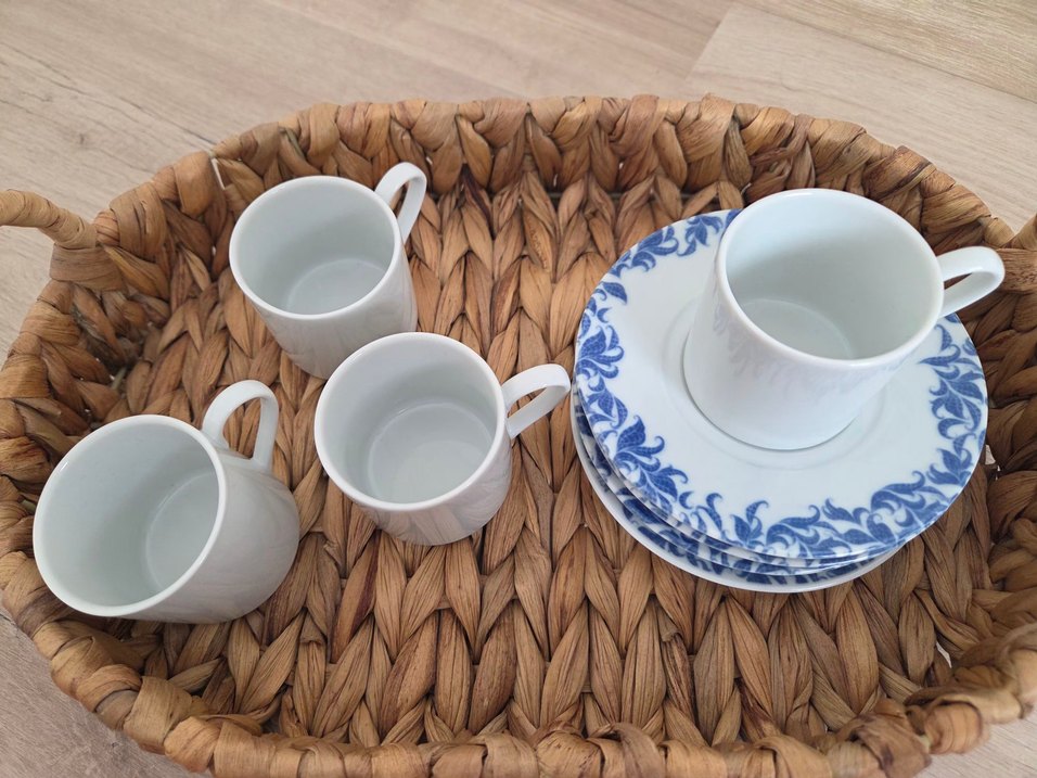 Beyaz ve Mavi Desenli Porselen Fincan Takımı