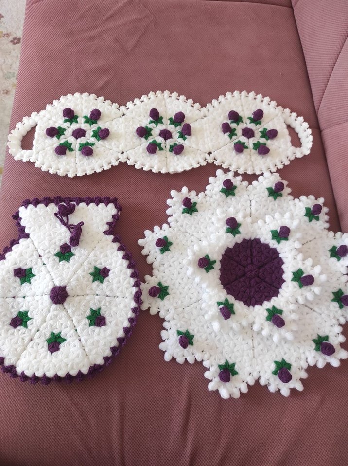 Beyaz ve Mor El Örgüsü Dekoratif Set LİF
