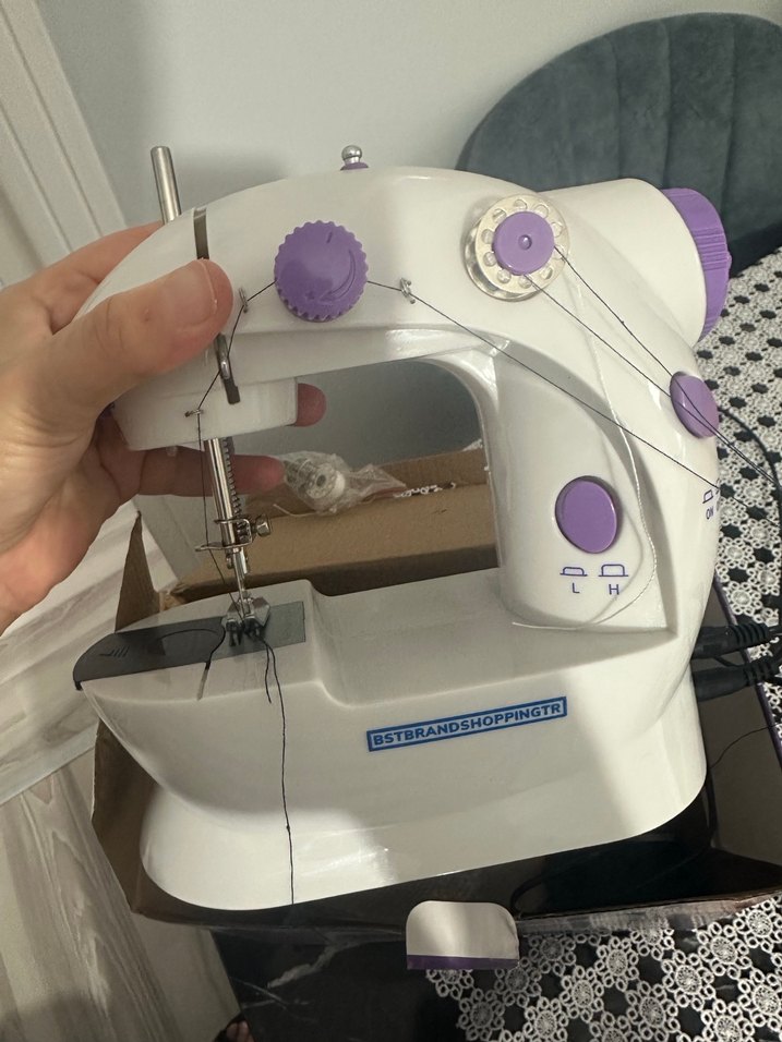 Beyaz ve Mor Mini Dikiş Makinesi