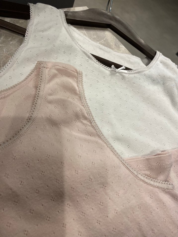 Beyaz ve pastel renklerde, yumuşak ve nefes alabilen çocuk atletleri, ince dokulu desenler ve zarif kenar detaylarıyla. 9/10 yaş pamuklu ,yumuşacık tam kışlık pamuklu sıcacık terletmez ,üşütmez okula forma içine veya günlük her daim penti lekesiz ,kaliteli esnek lastikleri sağlam -biri beyaz diğeri toz pembe .ikili fiyatıdır