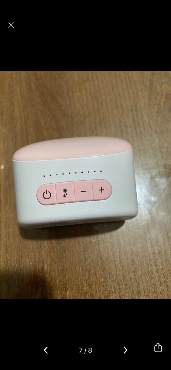 Beyaz gövde ve pastel pembe detaylara sahip göğüs pompası, güç ve emiş ayarı için basit düğmeler içerir. Herseyi tam çok az kullandım.