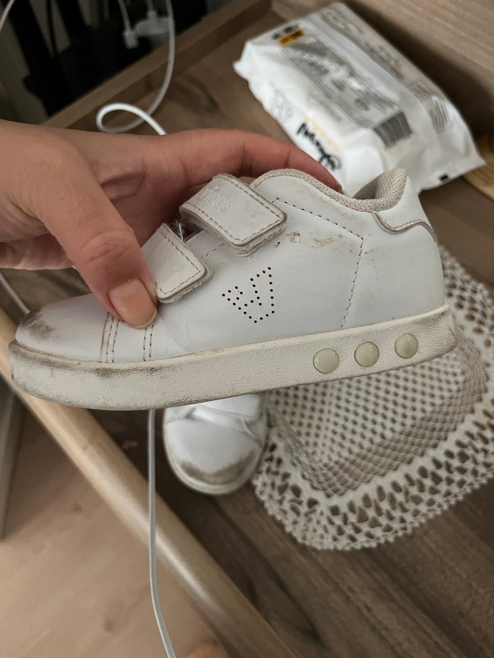 Beyaz ve pembe renkte, velcro bantlı ve kauçuk tabanlı çocuk spor ayakkabısı. Sokak tarzı ve gündelik kullanıma uygun.2 çift ayakkabı