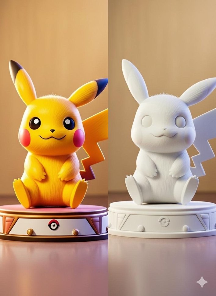 Bu set, biri canlı sarı ve diğeri tamamen beyaz renkte olan iki Pikachu aksiyon figüründen oluşur, her biri Pokémon temalı yuvarlak bir tabanın üstünde oturuyor. ⚡