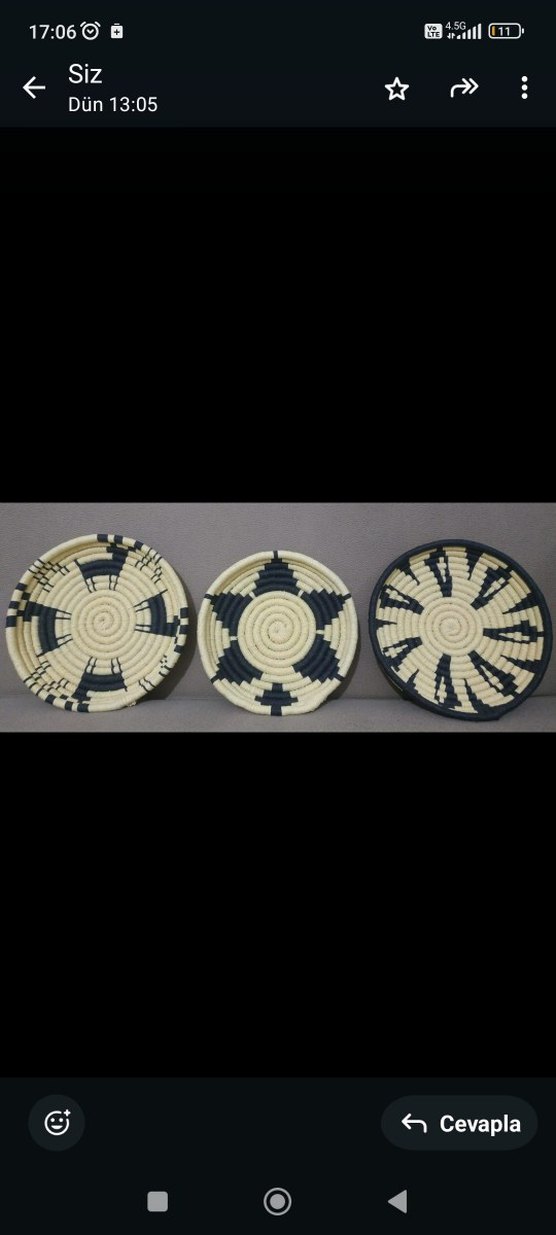 Doğal beyaz zemin üzerinde koyu geometrik desenlere sahip üçlü dekoratif sepet seti.