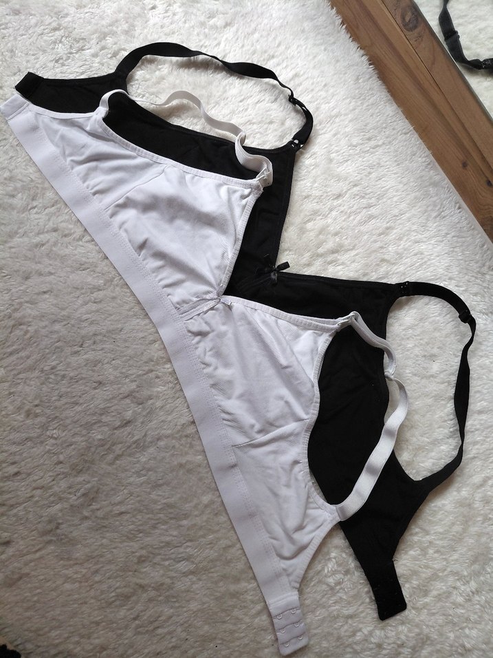 Ayarlanabilir askılı beyaz ve siyah spor sütyen seti, rahatlık ve streetwear tarzı sunar. Beyaz hiç giyilmedi, siyah da iki defa kullanıldı, beden olmadı. 85 bedendir.
