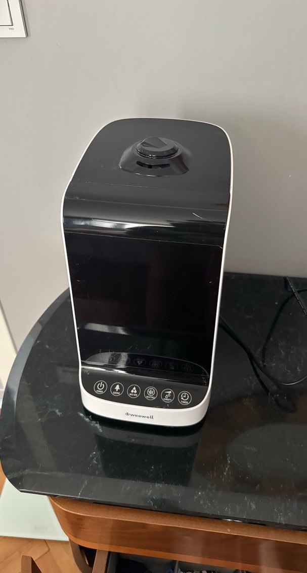 Dijital kontrol paneline sahip beyaz ve siyah hava temizleyici ve nemlendirici. Hava kalitesini artırır ve odaya nem katar. ️ihtiyaç fazlası olduğu için satılıktır