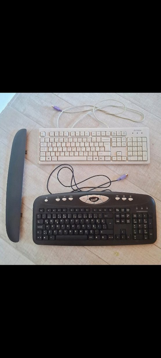 Krem renk KM-720 model A4 Tech marka ile Siyah temiz K645 Genius ek parçalı klavye. İkili fiyat. Girişleri USB olmadığı için deneme opsiyonum yok ama bildiğim kadarıyla sağlamlar. Olur da çalışmazlarsa iade alırım.