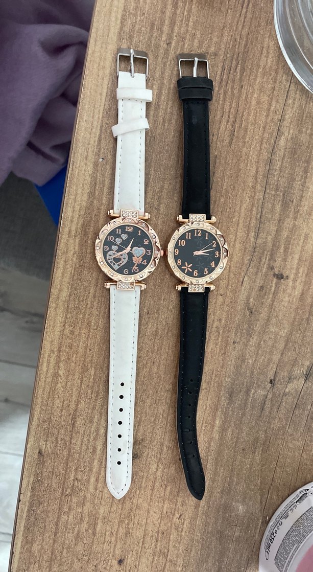 Beyaz ve Siyah tokalı kayışa sahip, renkli kadranlı ve gül altın detaylı kadın saati, modern klasik tarzda Paris etkisiyle birleşiyor. ikili satılmaktadır⌚