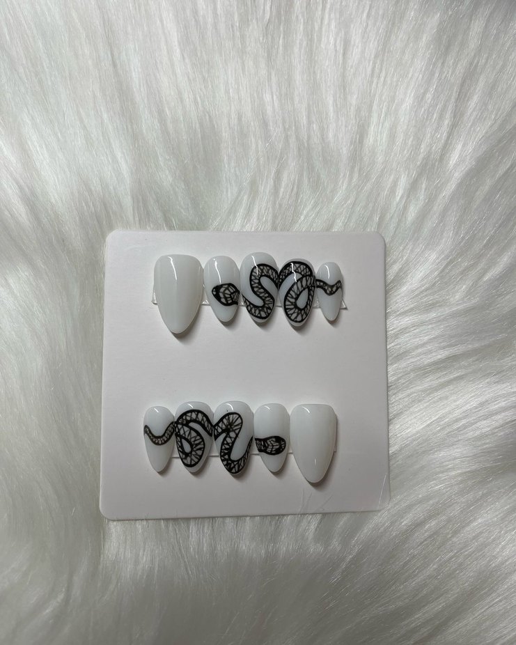Beyaz ve Siyah Yılan Desenli Tırnak Süsü