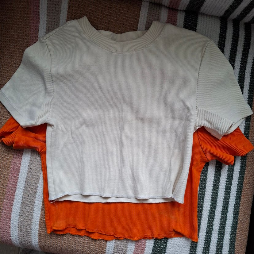 Beyaz ve turuncu Kısa Kollu Crop Top