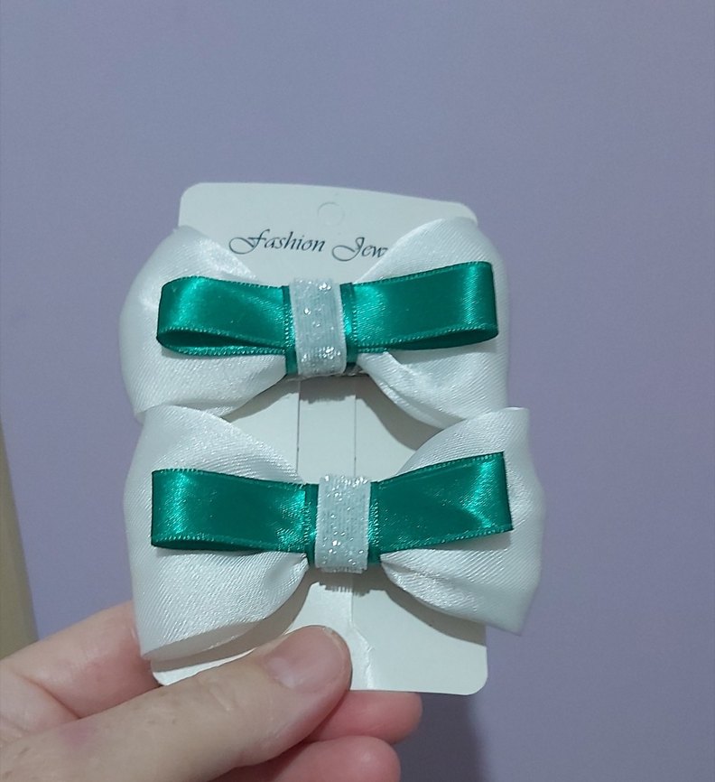 Beyaz ve Yeşil Fiyonk Saç Tokası Seti