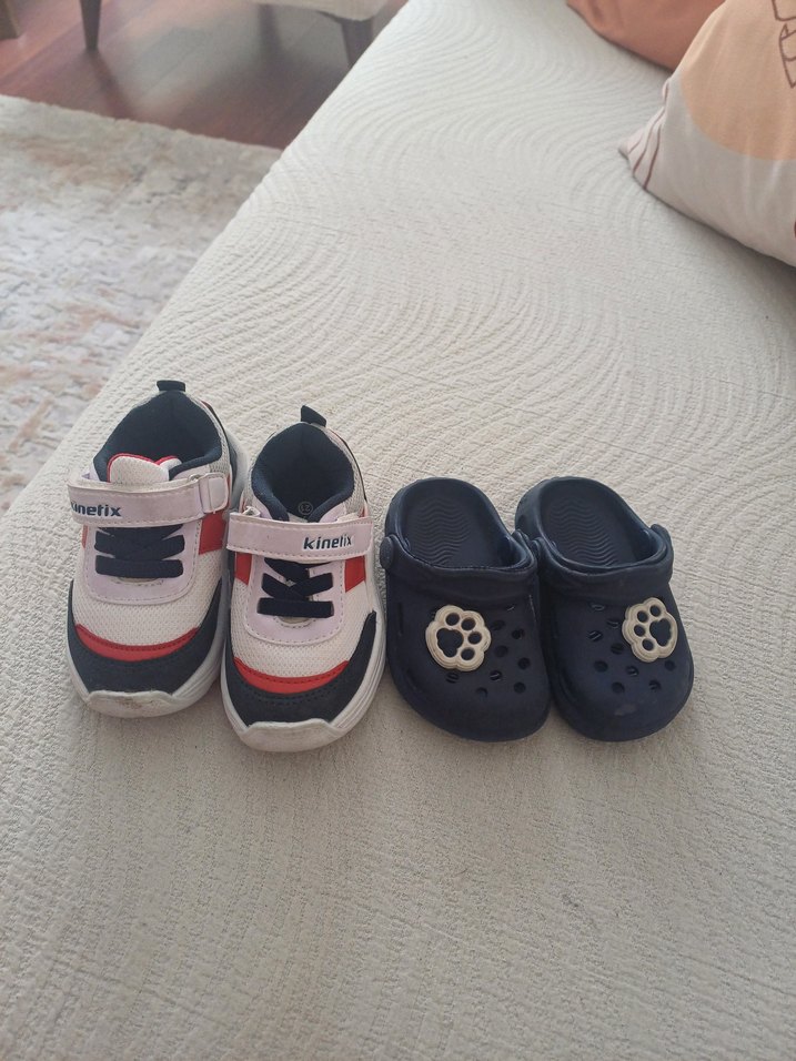 Beyaz, Velcro bantlı erkek çocuk spor ayakkabısı. Kauçuk malzemeden üretilmiş, rahat ve şık sokak stili için uygun.
