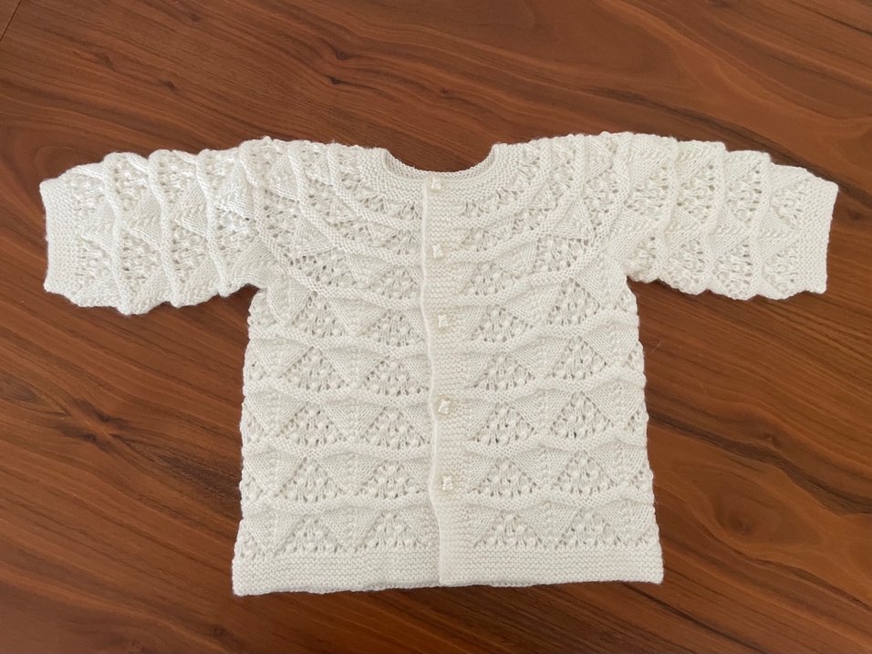 Beyaz renkli, vintage tarzında kız çocuk hırkasıdır. Uzun kollu ve vücuda oturan kesimiyle, yumuşak örgü kumaştan üretilmiştir. Detaylı örme deseni klasik bir görünüm sağlar.