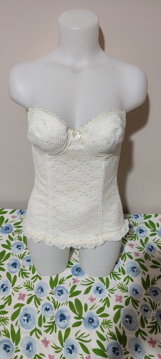 #Beyaz vintage tarzda mini uzunlukta, dantel kumaştan yapılmış, hafif ve bohem görünümlü bir bustiyerdir. Ortasında küçük bir fiyonk detayı bulunur.