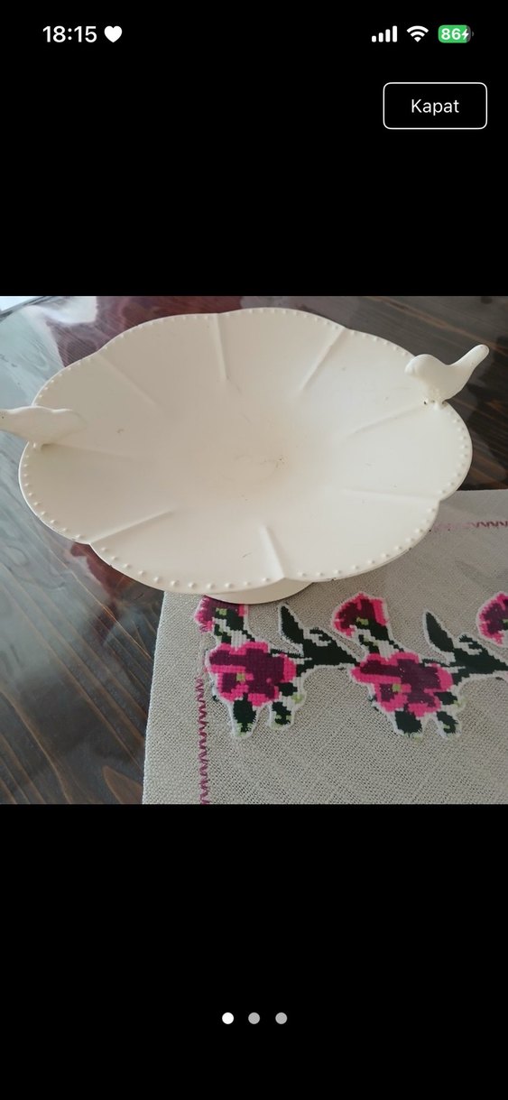 Kenarlarında kuş figürleri bulunan beyaz vintage tarzda seramik tabak. Yüzeyi desensiz ve kenarında ince detaylar bulunur. ️