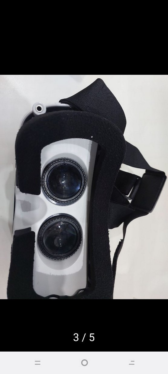 Ayarlanabilir kayışlı, çift mercekli beyaz VR gözlüğü. Rahat kullanım için yumuşak pedli.