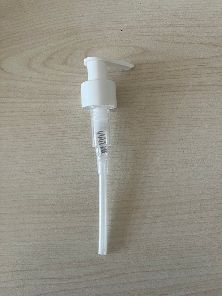 Uzun borulu ve yay mekanizmalı beyaz vücut losyonu pompası, kolay kullanım sağlar.