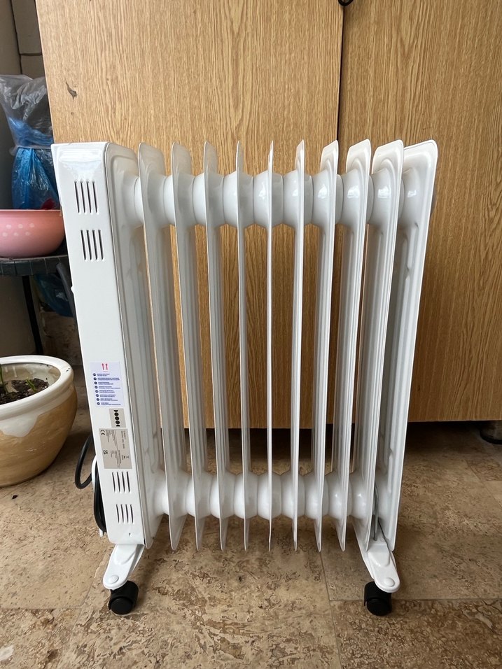 Beyaz yağlı radyatör 11 dilimlidir ve tekerlekleri sayesinde kolay taşınır. Kompakt tasarımıyla sürekli ısı sağlar.
