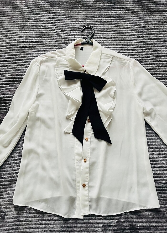 Fırfırlı, çıkarılabilir fiyonklu gömlek