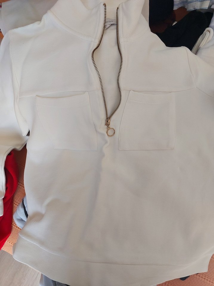 Beyaz Yakalı Fermuarlı Kadın Sweatshirt