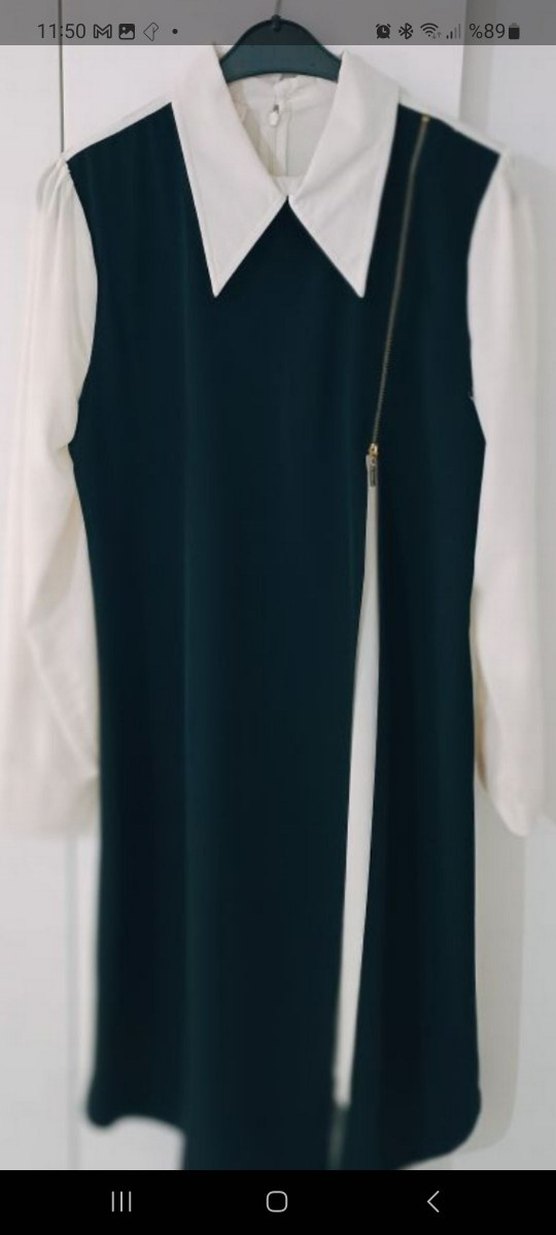 Beyaz Yakalı Uzun Kollu Siyah Fermuarlı tunik