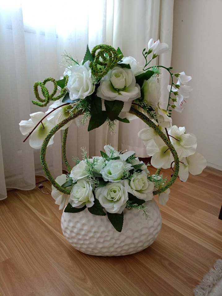Beyaz Yapay Çiçekli Dekoratif Vazo