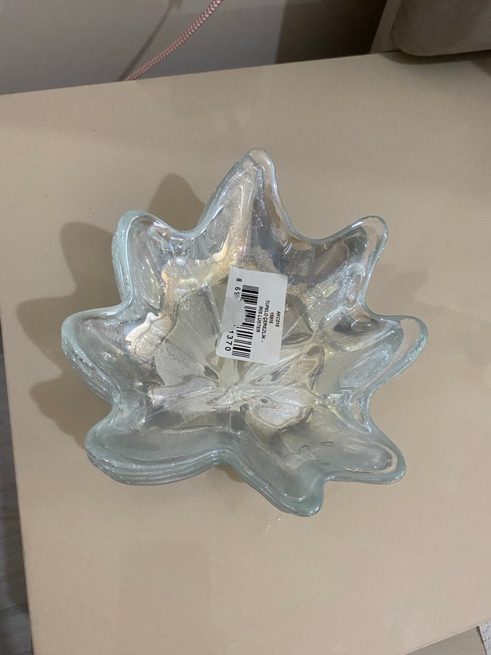 Beyaz camdan yapılmış, yaprak şeklinde ve pürüzsüz kenarlara sahip çerezlik. Hafif ve şeffaf tasarımıyla ortamınıza zarif bir dokunuş katar. 4’lü
