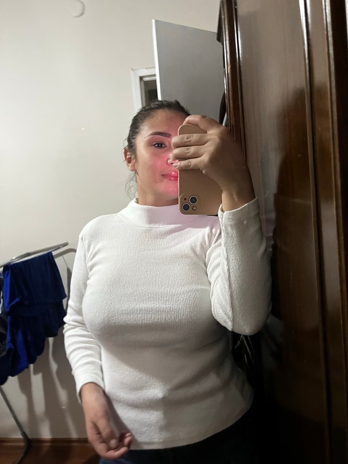 Bu beyaz, yarım balıkçı yaka ve uzun kollu kadın kazak, yumuşak ve sıcak kumaştan yapılmıştır. Minimalist ve desensiz tasarımıyla günlük kullanıma uygundur. ✨