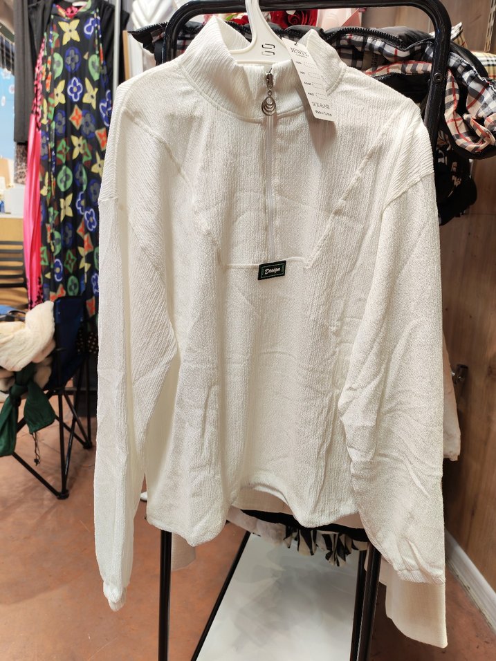 Beyaz Yarım Fermuarlı Kadın Bluz