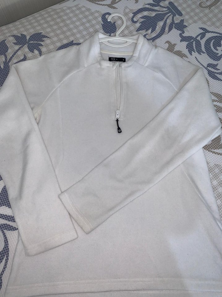 Beyaz Yarım Fermuarlı Kadın polar Sweatshirt s beden