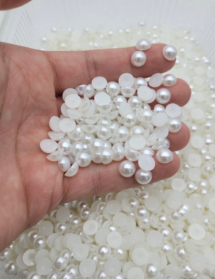 Tırnak süslemeleri için beyaz yarım inci, hafif parlak görünüme sahip. ✨