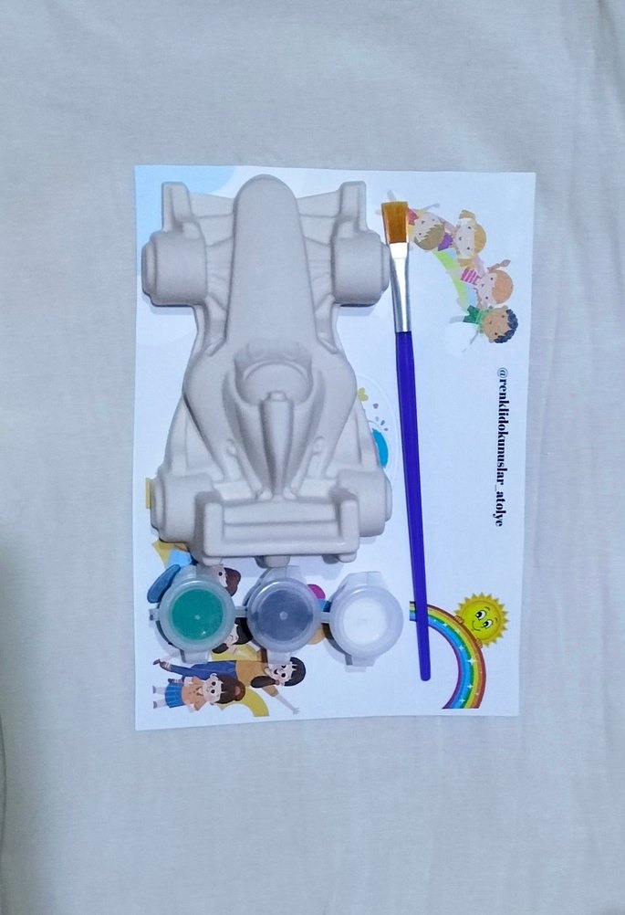 Beyaz yarış arabası model kiti, fırça ve üç boya kabı ile birlikte gelir. Detaylı boyama için hafif renk ve pürüzsüz yüzeylere sahiptir. ️
