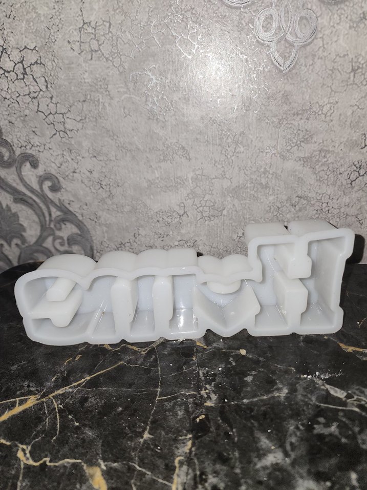 Beyaz Yazı Şeklinde Sabun ,mum , taş epoksi kalıbı