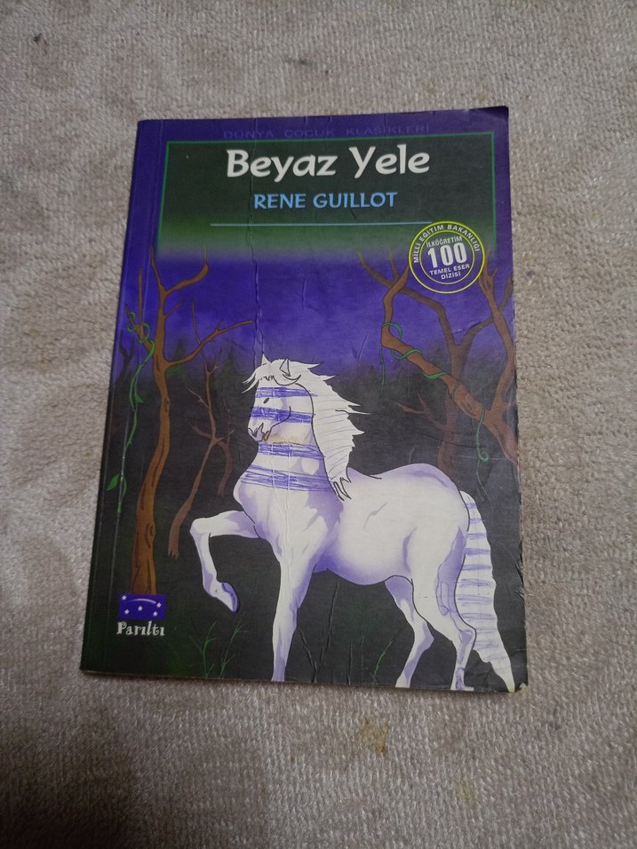 Rene Guillot'un "Beyaz Yele" adlı hikaye kitabı, kapakta beyaz bir at ve karanlık orman temasıyla Parıltı yayınevinden çıkmıştır.