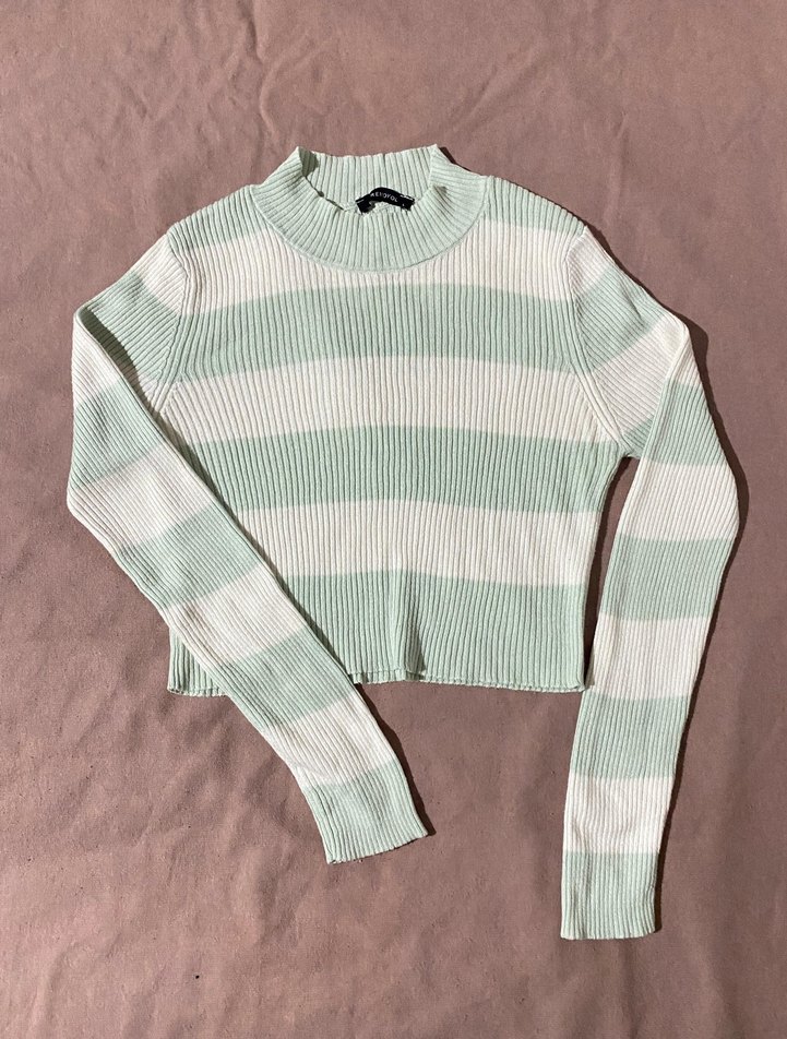 Bu fitted kazak, uzun kollu ve boğazlıdır. Pastel renklerde çizgili desene sahip olup, yumuşak triko kumaştan üretilmiştir. Günlük rahat kullanıma uygundur. kusuru yoktur