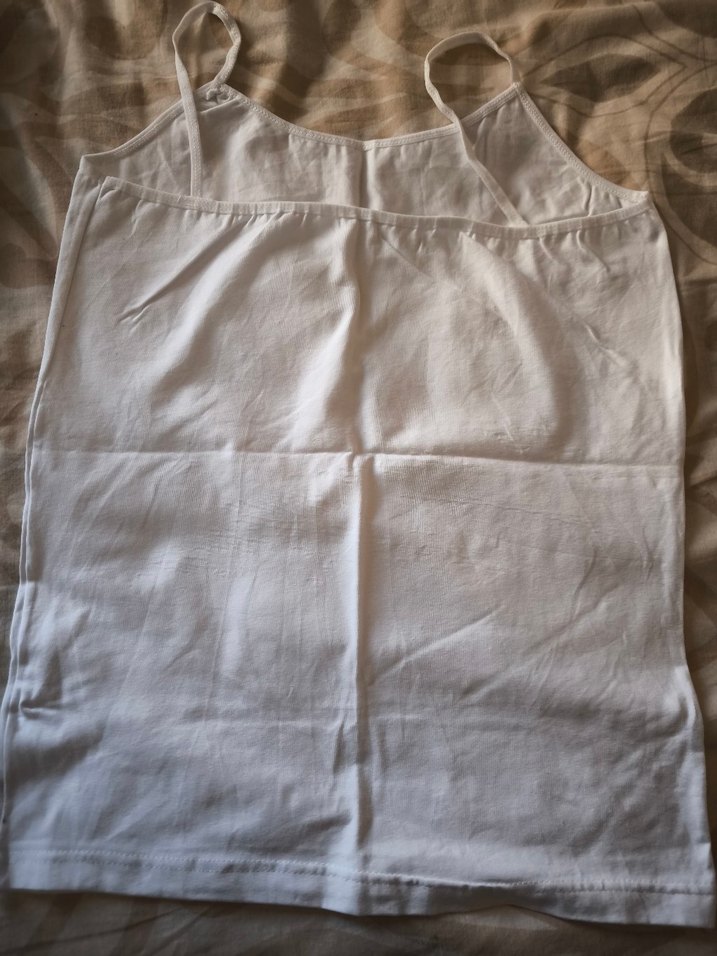 İnce askılı, yumuşak ve rahat kumaştan yapılmış beyaz bayan atlet. Günlük kullanım için sade ve desensiz tasarım. bedenler için iletişime geçiniz lütfen