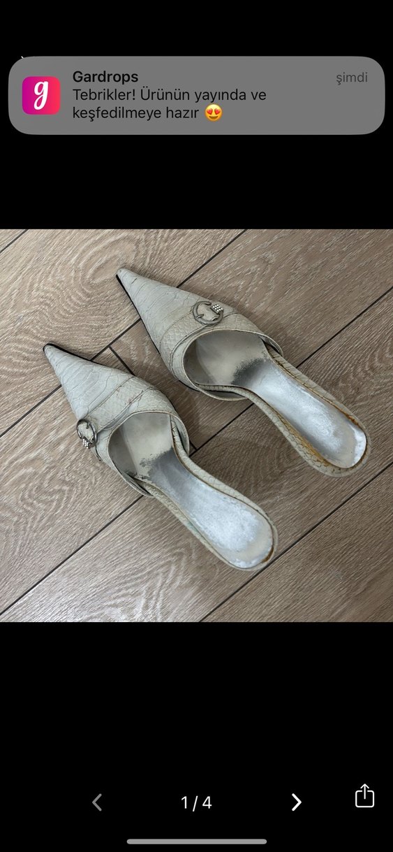 Beyaz yılan baskılı stiletto topuklu terlikler, şık tokasıyla Paris ve bohem tarzını yansıtıyor.